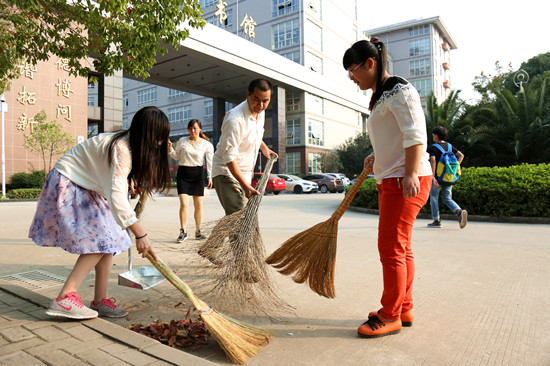 22日下午,该校还开展了卫生大扫除活动。各学院、各职能部门教工代表经过近两个小时的打扫,将学校校园的主干部门都打扫得干干净净,为学校全体师生员工提供了非常整洁的环境。该活动将于每周四下午定期举行。