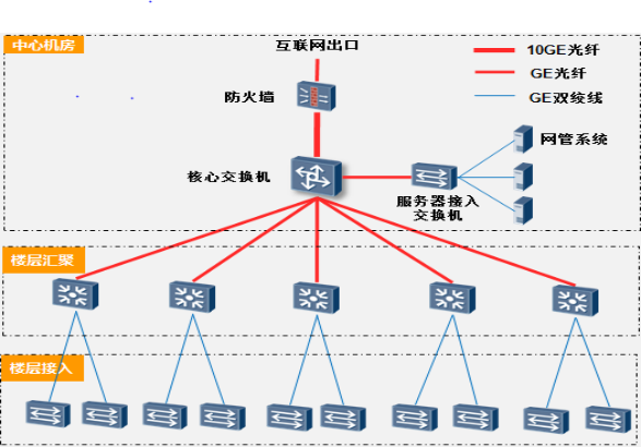 随着学校业务发展日渐增多,服务器数量大量增加,现在是将服务器直接接入到核心交换机上,不利于运维管理;而且大量服务器直接接入到核心交换机,造成机房走线杂乱,链路中断后定位故障困难。