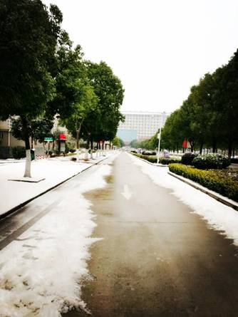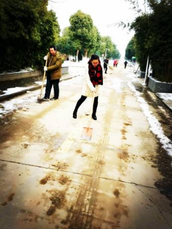 【后勤管理部讯 通讯员周丹】1月25日下午,武汉迎来迟来的第一场大雪。满眼望去,一片银装素裹。为确实保障师生出行安全,后勤全体人员出动,积极投入抗寒除冰工作。