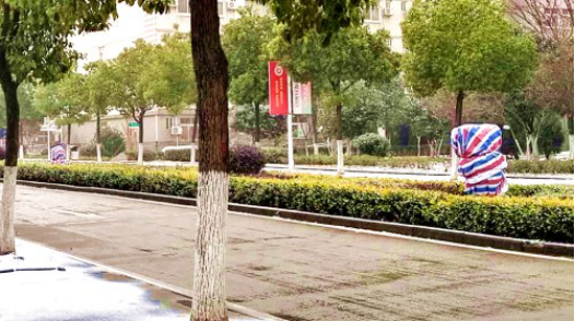 26日早上,校园主干道上干净整洁,整个校园一片宁静祥和。