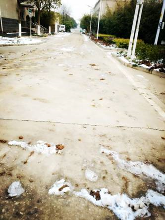 下午五点左右气温骤降,为方便教职工下班,后勤工作人员撒盐防结冰;