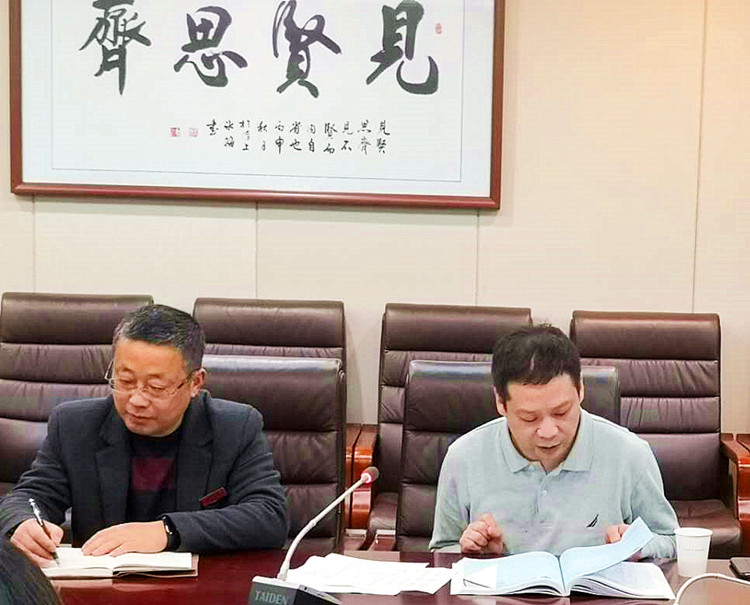 图为洪山区疾控中心领导听取我校健康管理工作汇报