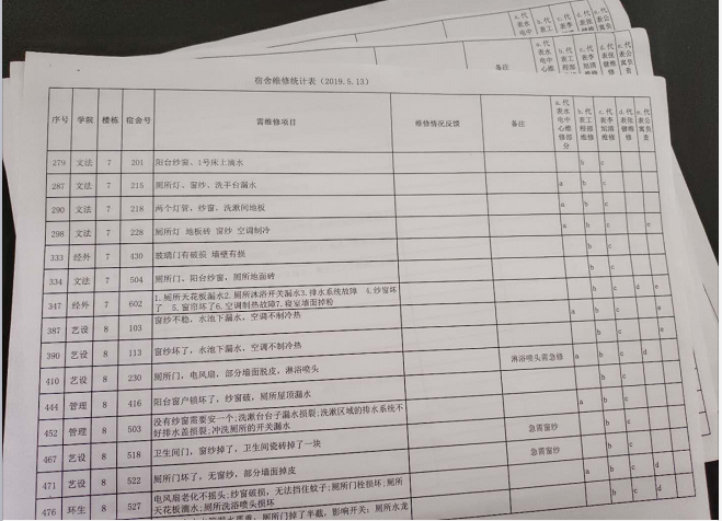 据悉,此次大会旨在进一步提高维修反应速率及维修质量,确保后勤基建及维修按时保量的完成。根据前期维修内容和经验,此次会议提出以下几项内容:一是确定2019年暑期工作的重点为积极主动查访1-13栋学生公寓维修点,分类汇总维修信息;二是召集维修队、工程队空调、热水器、门窗玻璃、防水等专业维修队按维修工作内容和时间分工合作确保6月10日前完成已确定的维修项目