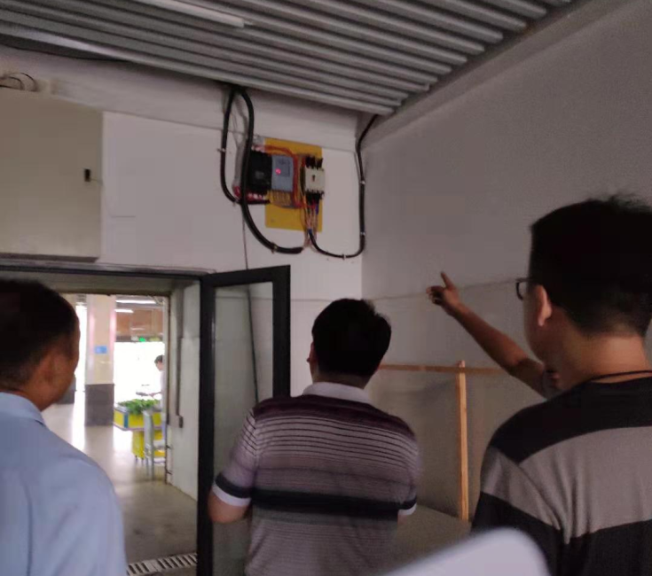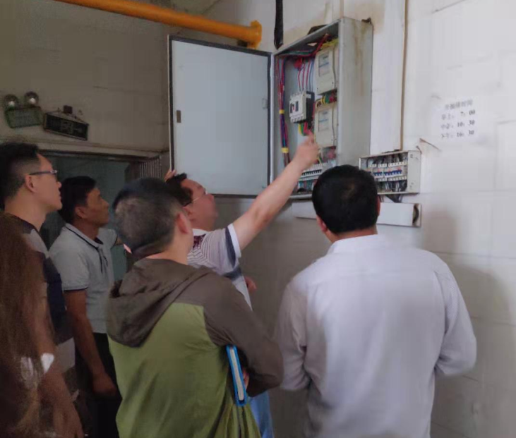 专家协同后勤物业部长黄浩、水电中心经理汤运扬及高压中检查食堂线路