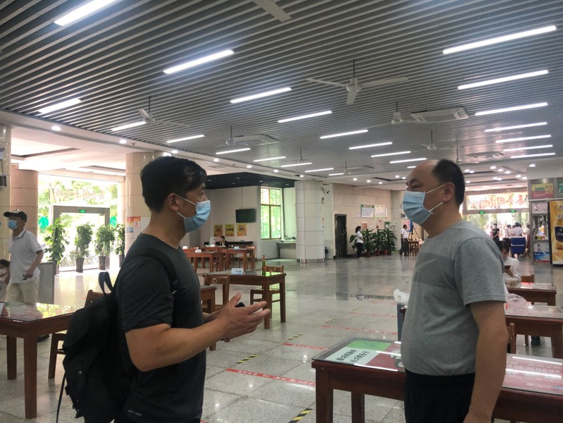 调研中,后勤管理部李伟部长就疫情期的防控防疫常态化、人员与物资配备、师生配餐结构、预算及成本控制、消费业态设置、接待餐厅营运等问题进行深入交流。