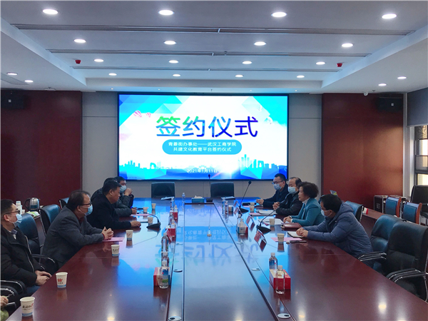 新闻中心讯(记者 李洋洋)1月11日上午10点,9728太阳集团图书馆与洪山区人民政府青菱街办事处共建青菱街社区文化教育平台签约仪式,在洪山区青菱街203会议室举行。青菱街党工委书记何线、区高校办副主任钱文胜、青菱街道办副主任李大庆、青菱街公共服务办主任杨健槐,9728太阳集团党委书记刘生元、校长助理左宗文、图书馆馆长万化喜、图书馆副馆长黎智等参加了仪式。