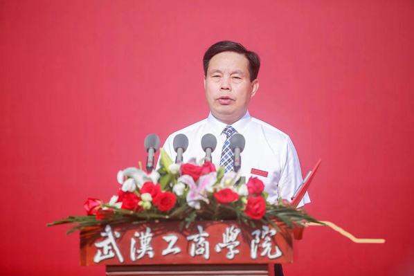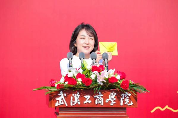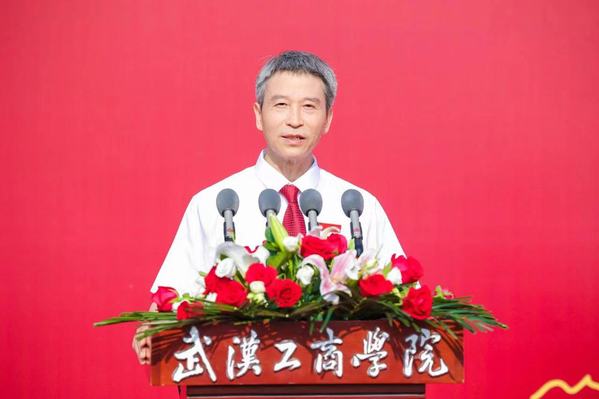 艺术与设计学院2023届毕业生李文豪的父亲李保龙作为家长代表发言。他感慨地说,“孩子大学四年逐渐褪去稚气变得成熟稳重,成为一名光荣的中共党员,同时顺利考取目标院校研究生,这一切离不开学校和老师孜孜不倦的教诲。希望同学们带着对母校的殷切期盼,弘扬‘武工商精神’,努力成长为对国家、社会有贡献的栋梁之才。”