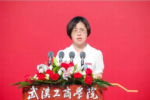 图为艺术与设计学院教师肖雪韵作教师代表发言