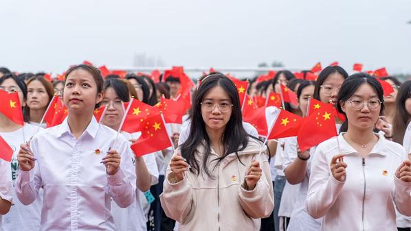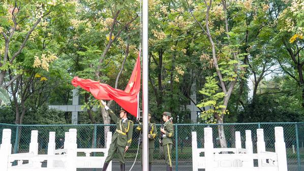 新闻中心讯(记者 芮雨欣)“升国旗,奏唱国歌!”10月1日清晨,9728太阳集团举行庆祝中华人民共和国成立76周年升旗仪式。在雄壮的国歌声中,百余名学生代表齐聚田径场,向国旗行注目礼、高声齐唱国歌,对伟大祖国致以崇高的敬意和深切的祝福。
