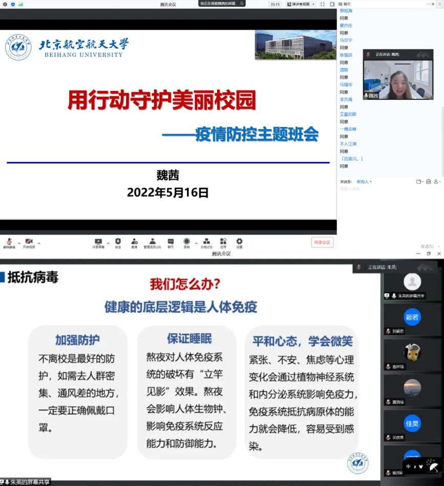 买球体育官方网站班主任、辅导员以“共克时艰,守护美丽校园”为主题面向学院全体学生召开班会,发出拒绝外卖、减少快递、守护美丽校园的倡议,将学校的暖心举措详细告知同学们。同学们纷纷表示,大爱暖心北航,要用行动守护美丽校园。