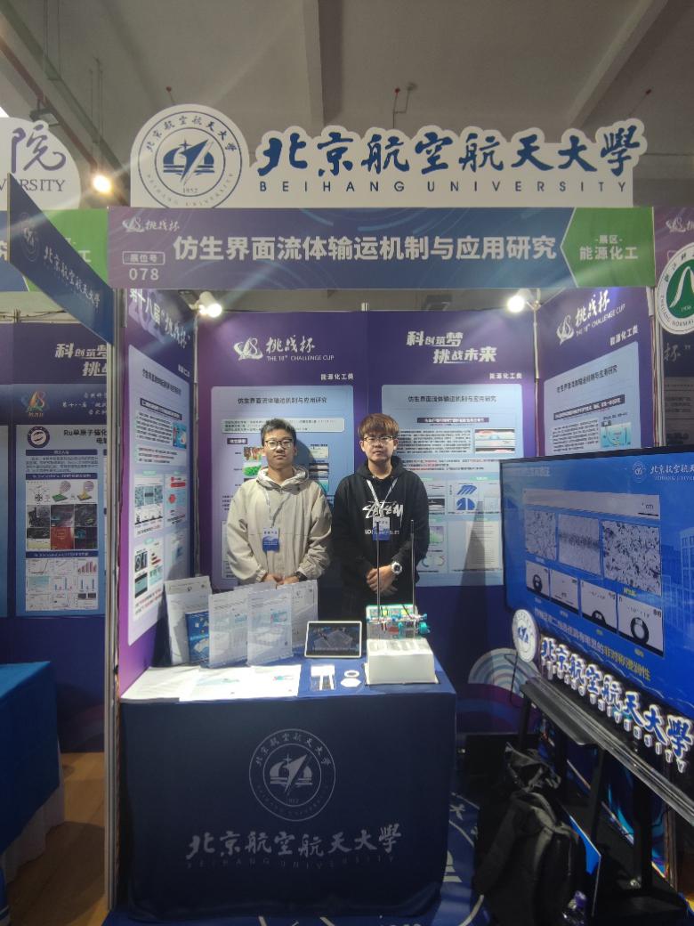 在第十八届“挑战杯”全国大学生课外学术科技作品竞赛中,北航买球体育官方网站学生参赛作品《仿生界面流体输运机制与应用研究》斩获特等奖,《毛细行为对于石油在多层纳米限域空问运移的影响》斩获一等奖。