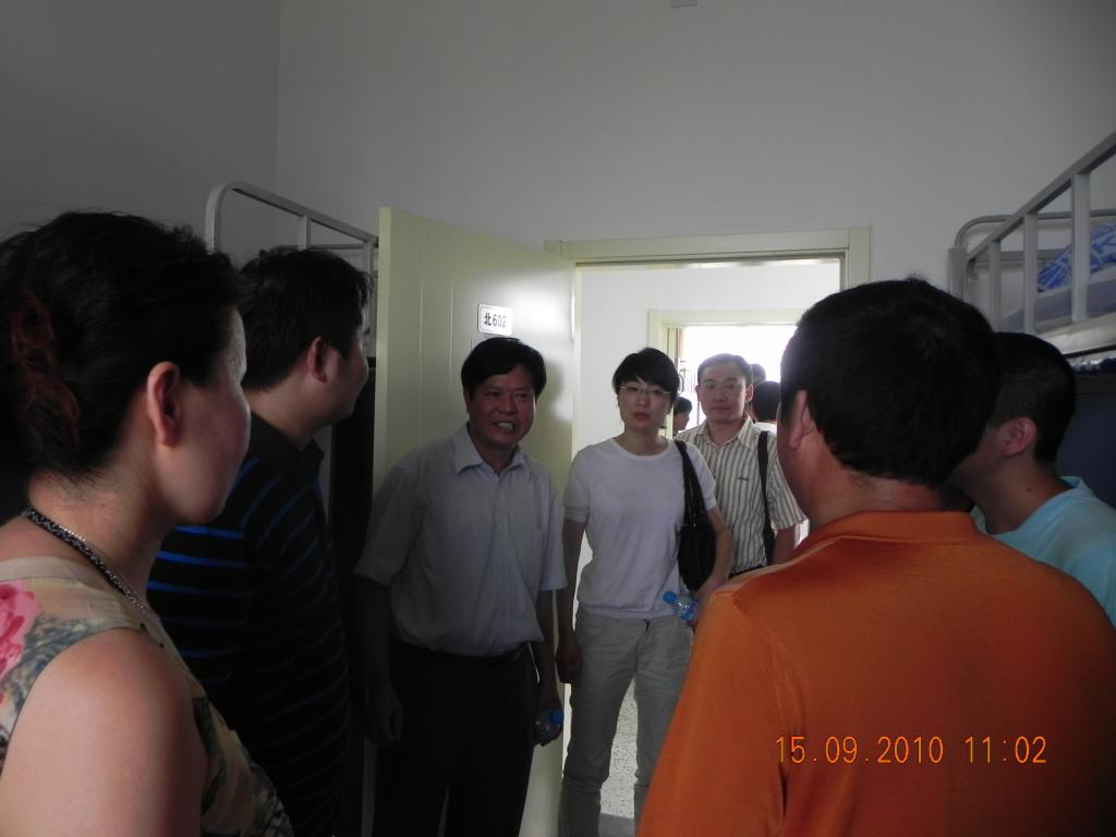 2010年9月15日,买球体育党委书记朱天乐教授、副院长相艳教授、党委副书记梁国栋老师,在分团委书记兼2010级辅导员韩炜老师的陪同下莅临沙河校区指导迎新工作,并深入学生宿舍慰问新生,与新生及新生家长进行座谈。
