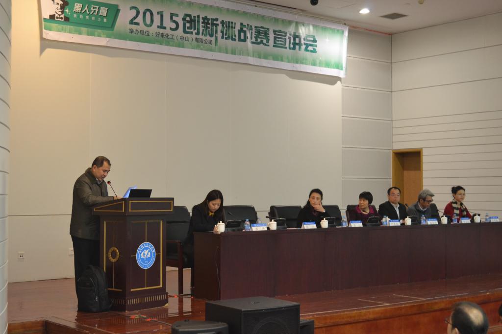 自2013年以来,好来化工(中山)有限公司开始以创新挑战赛的形式在化学与环境学院设立创新奖学金,旨在激发创新思维,培养创新型人才。本次宣讲会由买球体育官方网站研究生院培养处副处长郭红副教授的致辞拉开了序幕,她介绍了创新奖学金设立的意义,指出创新奖学金作为一种激励机制,在人才培养过程中发挥着重要的导向作用。随后郭林常务副院长代表化学与环境学院就好来化工对于买球体育研究生培养工作的支持和帮助表示了感谢,指出挑战赛为在校研究生提供了一个“校企交流”平台,对于提高学生创新科研能力的培养,对于学院深化人才培养模式改革,提高人才培养质量都有着深远的意义。