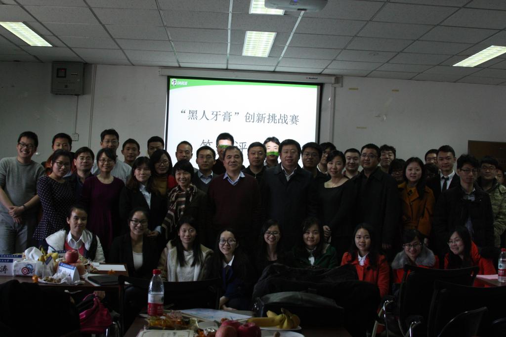3月8日上午,由好来化工(中山)有限公司赞助的化学与环境学院第三届黑人牙膏创新挑战赛答辩评审会在为民楼743隆重举行。参加本次评审会的有好来公司创新和研发中心总监何慕仪女士,好来研发中心经理陈晓斌先生,徐娟女士,岳红雷女士,好来研发中心高级研发工程师刘兵先生等5位领导,化学与环境学院常务副院长郭林教授,党委副书记李丹老师,化学系主任吴俊涛老师,殷鹏刚老师,翟锦老师,高秋明老师,张瑜老师,刘欢老师,王华老师,周苇老师,高龙成老师,岳永海老师等12位评审老师,以及入围挑战赛决赛的27位同学。