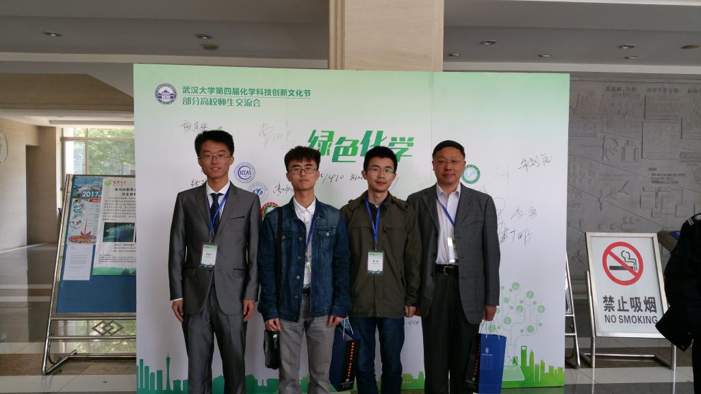 4月22日上午,买球体育高秋明教授带领2014级本科生苗伟宁、蓝昊和杨焱参加了武汉大学举办的第四届“化学科技创新文化节”部分高校师生交流会。此次交流会共有来自吉林大学、南京大学、哈尔滨工业大学、武汉大学等18所高校本科生队伍参与。