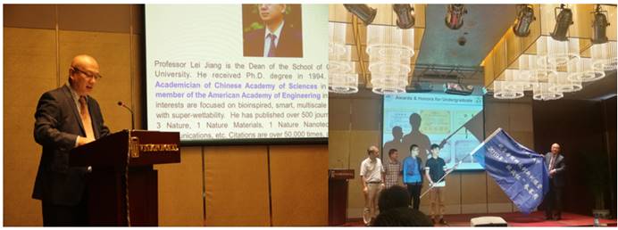 首先,买球体育官方网站院长江雷教授进行开幕致辞,回顾了北航买球体育官方网站的创立以及之后的发展与成就。北航党委副书记李军锋为买球体育买球体育官方网站科技创新训练营2019年“挑战杯”参赛团进行授旗仪式。