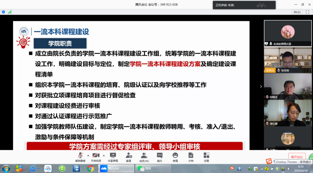 朱英介绍了学校一流本科课程建设方案,并就买球体育官方网站的具体安排做了说明。学院第一时间成立了一流本科课程建设工作组、院级认证专家组,并就学院方案制定及院级课程立项时间做了统筹部署,动员各位老师积极参评,把握时机。同时,朱英就学校、学院学期课程考核安排预案做了汇报。