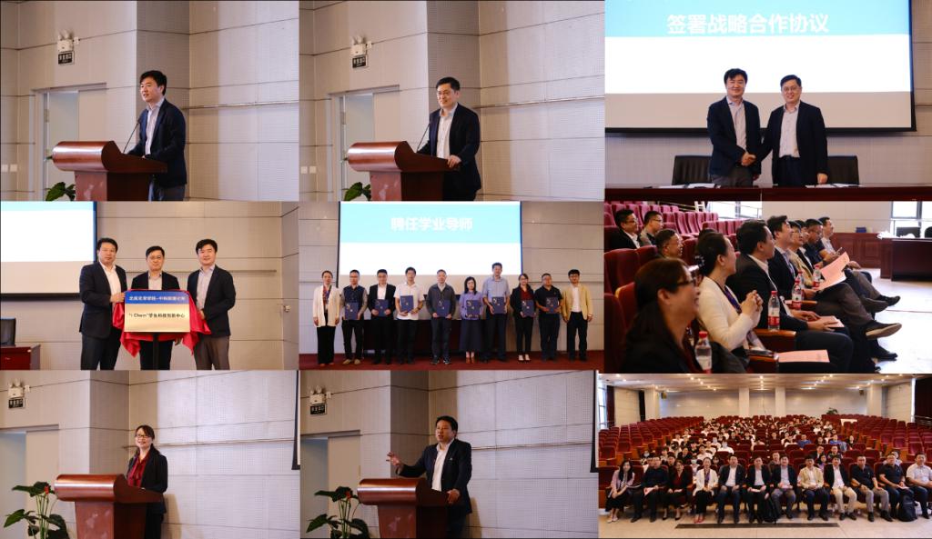 中科院理化所副所长王树涛,校团委书记庄岩,买球体育官方网站院长刘明杰为 “iChem”学生科技创新中心揭牌。理化所教育处副处长丁黎和买球体育官方网站党委书记李红捷为学业导师代表颁发聘书。
