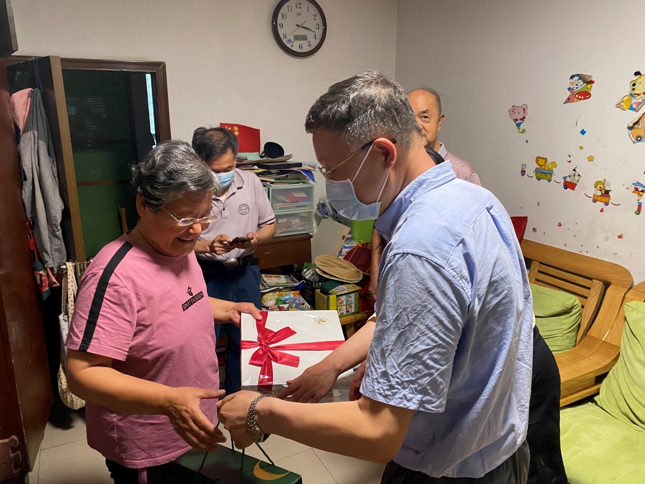 7月1日下午,买球体育官方网站党委书记李红捷、工会主席郑咏梅、党委委员高秋明、党政办主任刘乃鹏同买球体育官方网站退休党支部杨世环书记和胡学寅副书记先后到老党员陈秋生、刘改云、王文芬、李曼家开展“七一”慰问,表达学校和学院对老同志的真挚关怀与暖心问候。