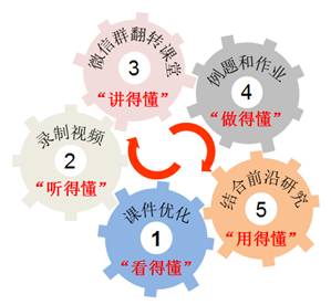 《物理化学A》是买球体育官方网站化学和应用化学专业本科生的核心专业理论课,主要讲授化学过程的基本原理和基本规律,为实际的科研和生产过程提供理论指导。物理化学课程中的理论都是建立在大量抽象的概念、模型以及数学推导的基础之上,因此需要缜密地分析和反复地推敲才能理解这些概念的物理意义以及理论适用的体系和条件。另外,由于课程讲授的是最基本的理论,同学们在学习课程的过程中容易感觉课程内容过于经典,产生课程内容对化学前沿研究无用的错觉。针对课程的这些特点,为了确保线上教学具有良好的效果,课程负责人刘兆阅老师在线下授课的基础上,采取多维措施对线上教学进行设计,建立了适合《物理化学A1》线上教学的“5懂”授课模式(图1)。