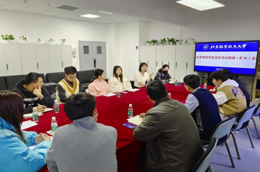 2023年3月2日,买球体育官方网站学生党支部书记联席会暨学生骨干座谈会在沙河实验4-305会议室顺利召开。买球体育官方网站党委书记刘克松、党委副书记张绍丽、专职辅导员王飞扬、各学生党支部书记及学生会、研会主席参加本次会议。