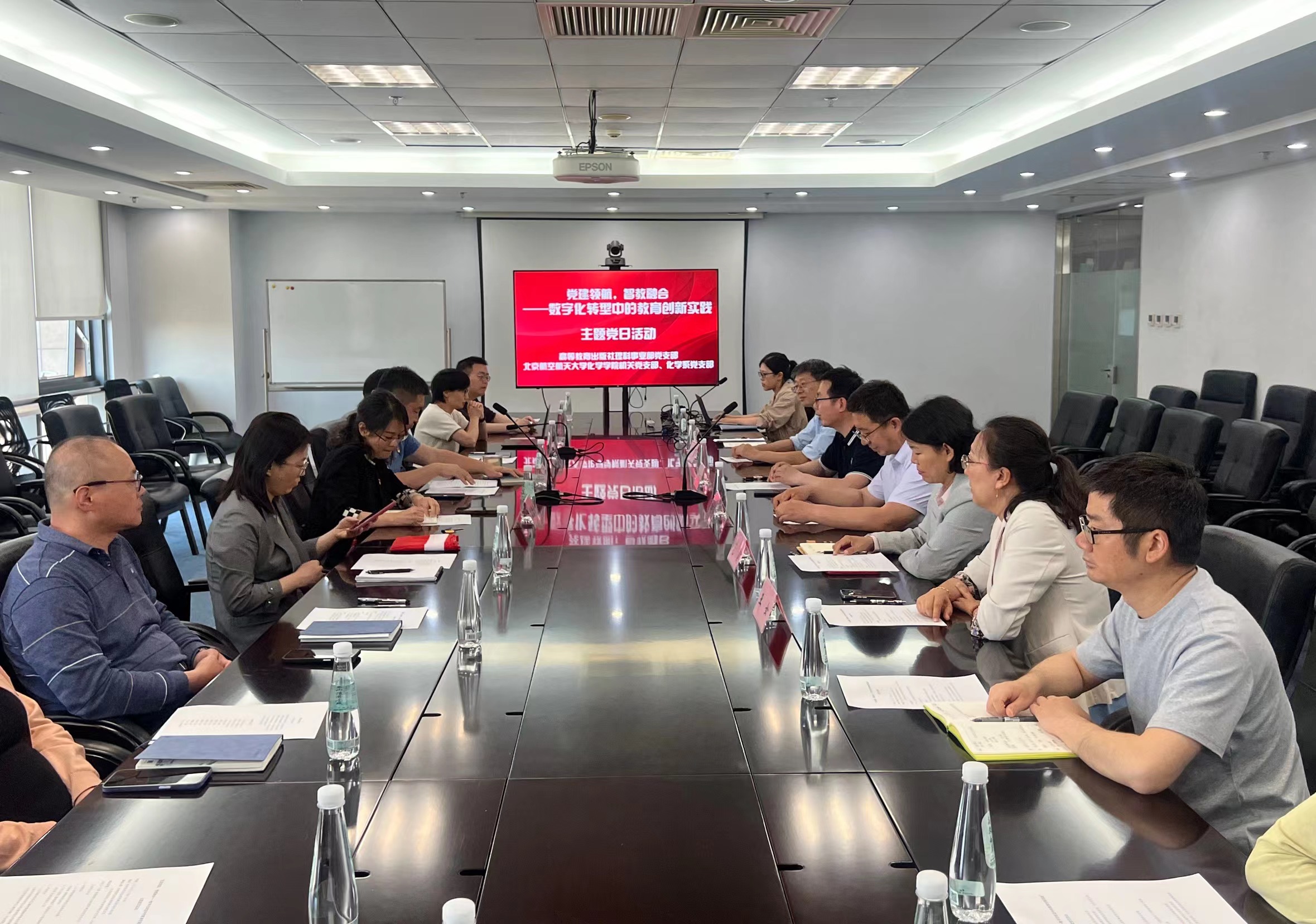 为扎实推进深入贯彻中央八项规定精神学习教育,以实干作风落实学校“数智赋能年”工作部署,推动买球体育官方网站以数智赋能驱动人才培养质量提升,5月14日,北航买球体育官方网站化学系党支部、机关党支部与高等教育出版社理科事业部党支部联合举办了以“党建领航,智教融合——数字化转型中的教育创新实践”为主题的联学共建活动。北航买球体育官方网站党委副书记张绍丽、副院长田东亮、党委委员及支部党员参加活动。活动由高等教育出版社理科事业部支部书记王强主持。