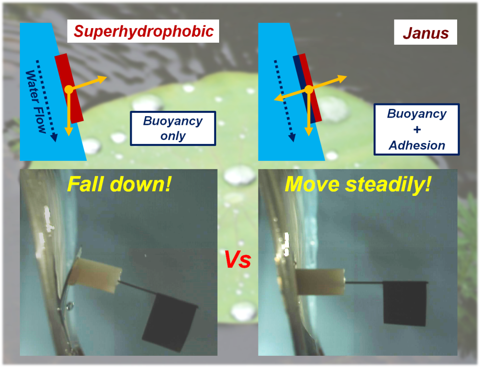 在江雷院士和曹墨源博士的指导下,买球体育官方网站2014级本科生赵昱焱以第一作者身份在知名期刊《Advanced FunctionalMaterials》(影响因子为11.382)上发表超疏水材料相关论文:Improved interfacial floatability ofsuperhydrophobic/superhydrophilic Janus sheet inspired by lotus leaf,即基于荷叶的超浸润组合体系提升界面物体的漂浮稳定性。