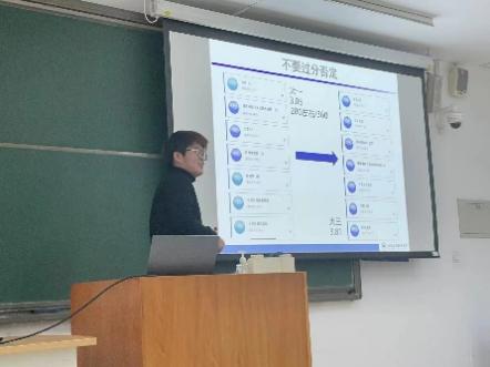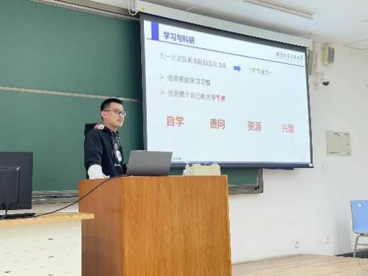 他首先讲述了“不过分否定”和“不过分肯定”的健康心态,其中着重讲述自己在进入买球体育官方网站后找到了人生目标,不断奋斗并成功逆袭的故事,为刚遭受期中考试成绩打击的同学们提供了安慰,肯定与鼓励,接着,他从目标、学习、科研、娱乐几个方面进行分享,其中慕课自学、文献阅读等方法让同学们获益匪浅。