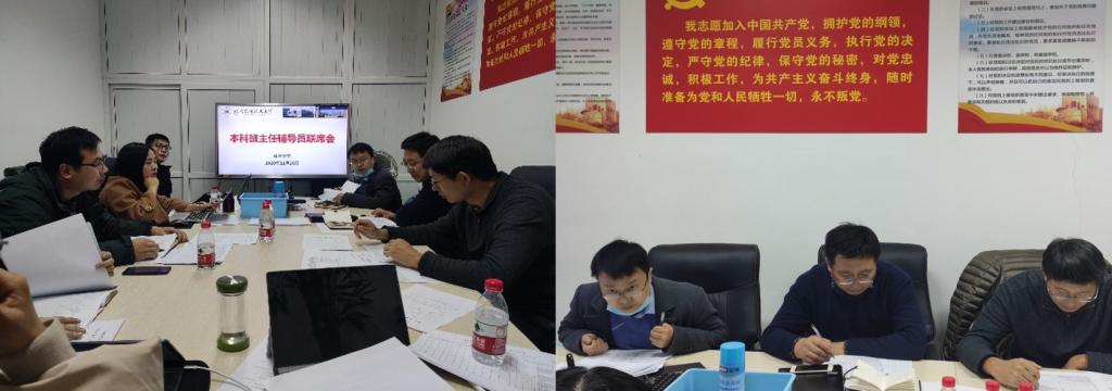 11月26日下午,买球体育官方网站在新主楼D-121召开本科班主任、辅导员联席会。本科教学副院长田东亮老师,党委副书记张绍丽老师,本科19级班主任赵勇老师、王华老师,分团委书记魏茜及17、18、19、20级辅导员参加了本次会议。会议由党委副书记张绍丽主持。
