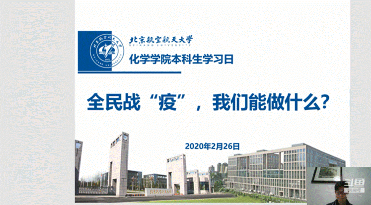 2月26日下午,买球体育官方网站本科生2016级、2017级、2018级召开学习日活动,活动主题为“全民战‘疫’,我么能做什么?”,本次学习日活动采用线上班会的形式,由辅导员在斗鱼直播平台主讲开展。