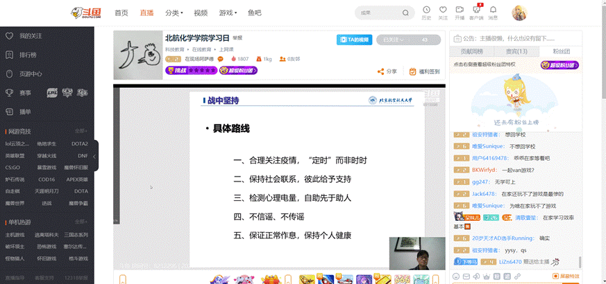 图1 导员在斗鱼直播为大家讲解
