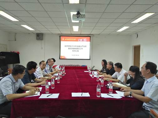 7月11日下午,由纪委书记何新洲,纪委副书记、纪委办公室主任、监察处处长武立勋,纪检员方滨艳,纪检员何述义,党风廉政监督员王健和谭立组成的检查组对买球体育全面从严治党暨党风廉政建设工作进行了检查。买球体育党委书记李红捷,常务副院长郭林,本科教学副院长朱英,化学系主任高秋明,党委委员杨青林及学院教工党支部书记、青年教师代表等参加了汇报会。