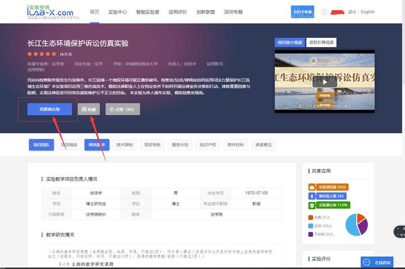 首先“收藏”实验项目,然后点击“我要做实验”会出现一个网址,点击即可跳转到实验项目后台。后续可在个人主页“我的项目”查看已选课程。