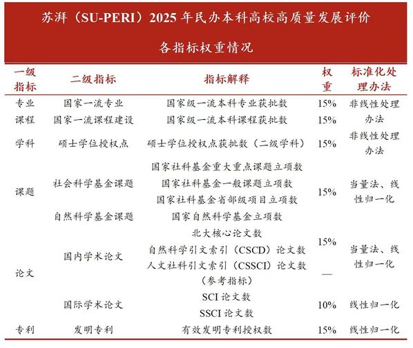 苏州大学民办教育研究中心(SU-PERI)是国内唯一由“双一流”高校设立的民办教育研究机构,是“中国教育智库榜单”(CETTE)中唯一上榜的民办教育智库。中心致力于诊断我国民办本科高校发展中的问题,探索高质量发展路径,联合国内多位学者,从教学、科研、社会服务等若干维度,涉及专业、课程、学科、课题、论文和专利共六个一级指标,对我国民办本科高校进行综合评价,研制了“苏湃(SU-PERI)2025年民办本科高校高质量发展评价”。