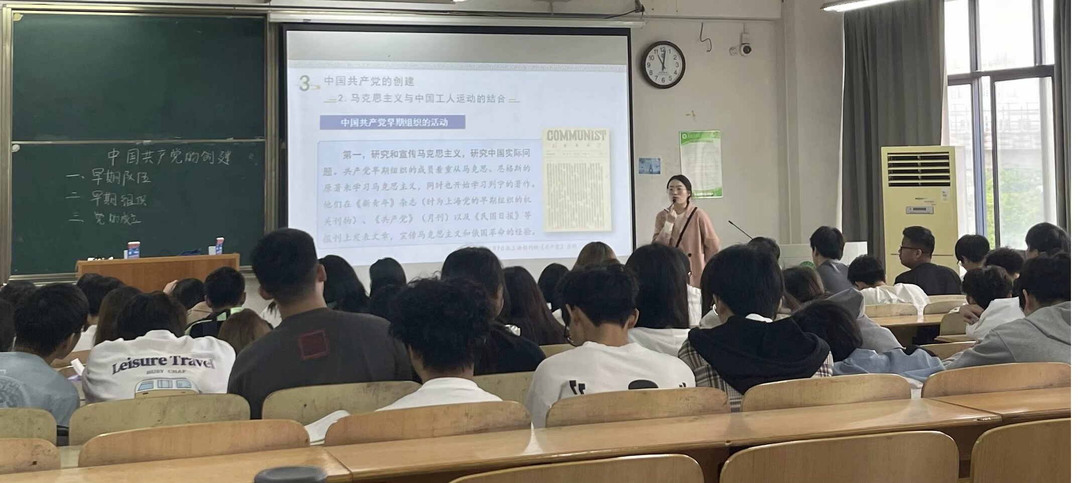 陈宝兴老师作为经验丰富的教师代表为大家讲述国共第一次合作的历史。陈宝兴老师上课伊始,与五位学生代表集体合唱《国民革命歌》,并以此为导入点揭示了国共第一次合作的历史背景。随后,陈宝兴老师深入剖析了中国共产党成立初期开展的一系列工作,包括新式农民运动、工人运动,并进一步揭示了以上运动新在哪里,着重表明其与前期探索的差异性。在深入剖析的基础上,陈宝兴老师通过深入浅出、摆事实的方式进一步论证了为什么国共合作离不开共产党的努力。