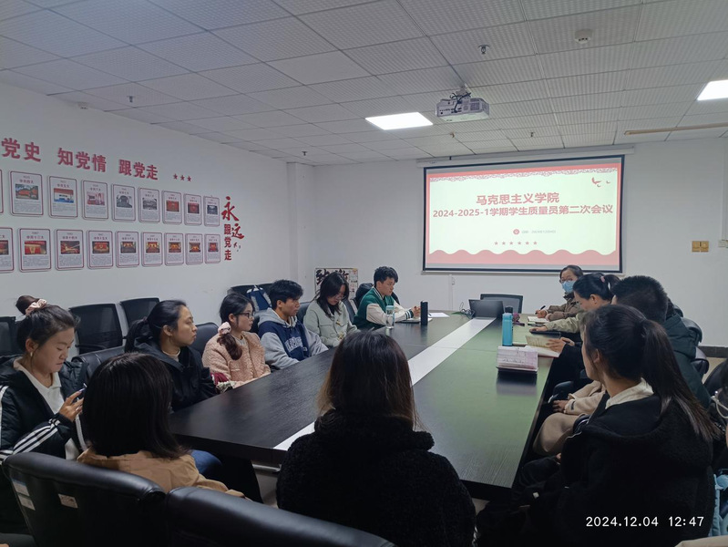 (通讯员 汪佳琪)2024年12月4日,马克思主义学院成功召开了第二次学生质量员会议。本次会议旨在深入讨论思政课程的教学质量与学生参与度问题,收集学生代表对于课程内容、教学方法等方面的反馈与建议。教学副院长、教研室主任及学生代表出席了此次会议。