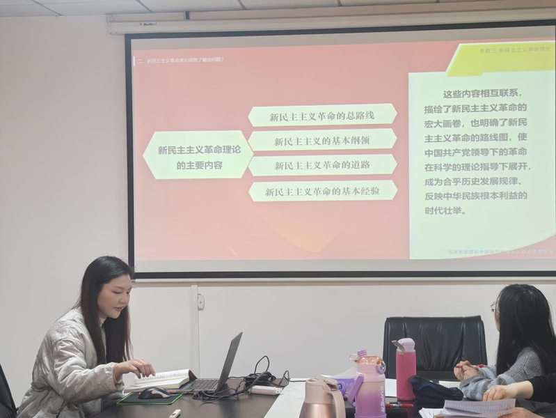 通讯员 郭欣羽)2025年2月27日下午3点综合楼1102,马克思主义学院“原理与概论”教研室召开本学期第二次集体备课会,本次会议聚焦于《毛泽东思想和中国特色社会主义理论体系概论》课程中的第二章《新民主主义革命理论》,旨在通过集体研讨,进一步优化教学内容与方法,提升教学质量。会议由张磊老师主持,教研室全体教师参加了此次会议。
