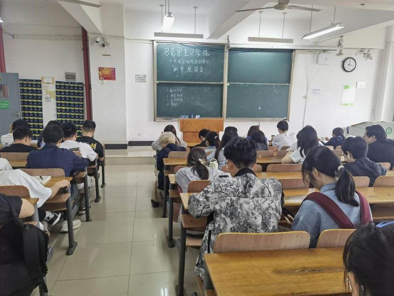随后,学生代表们踊跃发言,结合自身学习实际,分享了在《中国近现代史纲要》课程学习过程中的感悟与困惑。比如来自人工智能学院的一位学生代表表示,课程中对重大历史事件的详细解读,让他深刻感受到中国近现代史波澜壮阔的发展历程,极大地激发了自己对历史学习的兴趣。不过,他也提出,希望在课堂上能有更多机会进行小组讨论,通过与同学交流碰撞出思维火花,加深对知识的理解。另一位来自管理学院的学生代表则谈到,教师在讲解历史知识时旁征博引、妙趣横生,但部分理论知识相对抽象,希望能增加一些与课程相关的实践活动,比如组织参观历史博物馆、红色教育基地等,通过沉浸式的体验,更直观地感受历史的厚重。