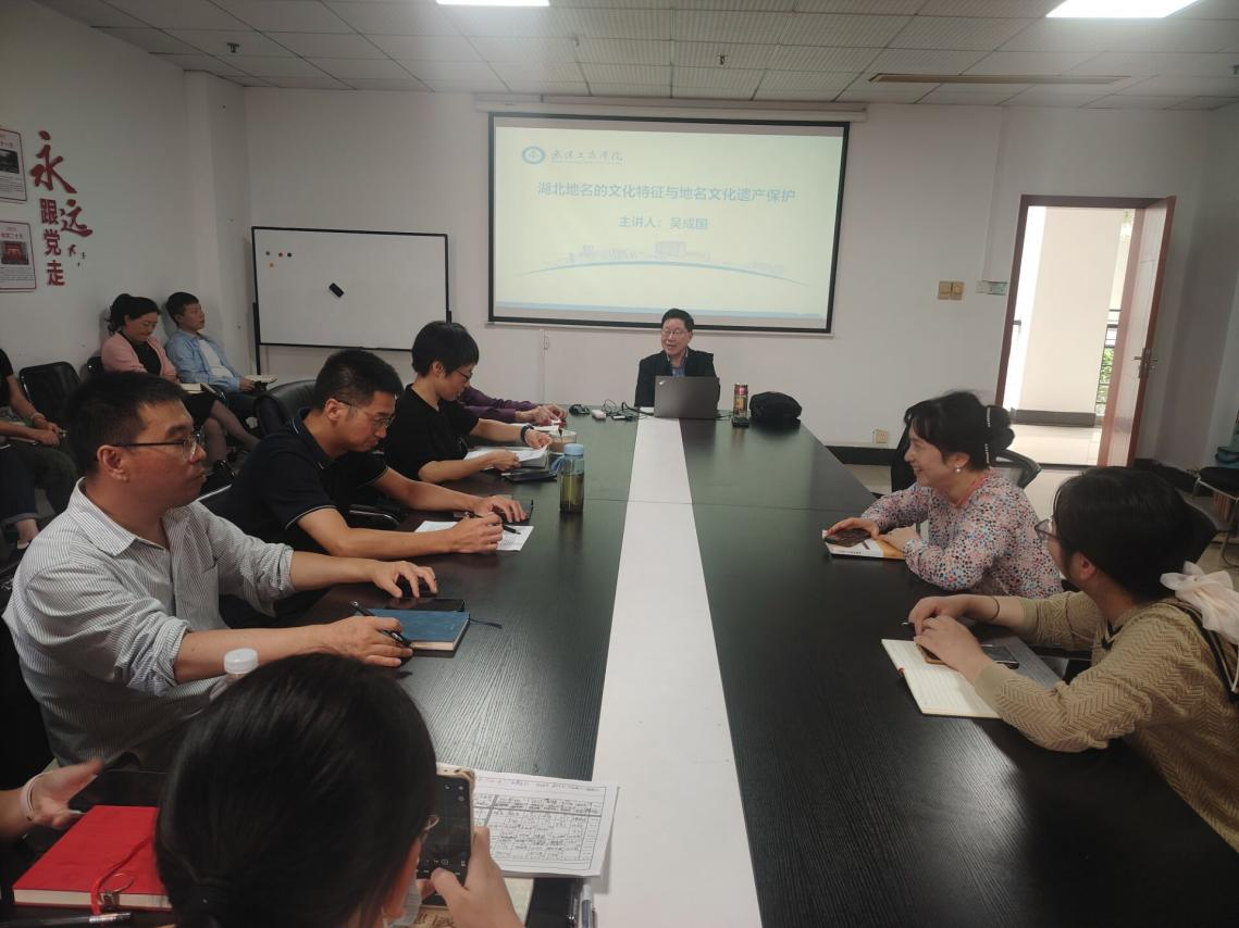 讲座中,吴成国教授围绕“地有名焉:作为文化遗产的地名与地名文化”、“荆风楚韵:湖北地名的文化特征”和“明珠遗泽:地名文化遗产保护的意义与价值”三个维度进行了深入浅出地讲解。吴成国教授首先对地名、文化遗产、地名文化遗产三个概念分别做了阐释,并详尽讲述了地名成为文化遗产的历程。接着吴成国教授引用大量经典诗词、典故和文献,讲述湖北为什么简称“鄂”?“荆楚”之名如何得来?介绍了“湖北”省名的来历,以及湖北地名所蕴含的文化特征,动情讲述了湖北地名背后的文化故事,让我们真切感悟到,“荆楚文化是湖北地域文化,是中华文明的重要组成部分,湖北大量地名打上了荆楚文化的烙印。”