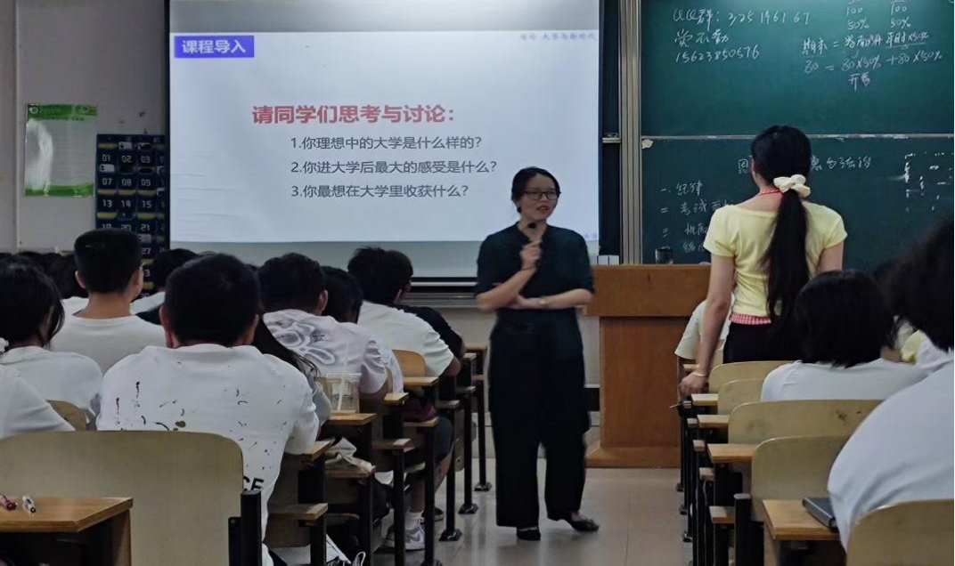 (通讯员 张唯)为充分发挥优秀教师教学示范引领作用,加强教师间交流学习,助力青年教师成长,提升教师专业素养与教学能力,推动教师队伍建设,马克思主义学院于2025年9月29日上午11点15分,在综合楼305教室举行优秀教师教学示范课活动。活动采用“沉浸式听课+集中评课”流程,聚焦示范课亮点与可借鉴经验开展深入交流,《德法》教研室全体教师全程参与。本次示范课由党玉勤老师主讲,授课主题为《大学与新时代》,凭借精心设计的教学内容与互动形式,吸引了众多师生关注。