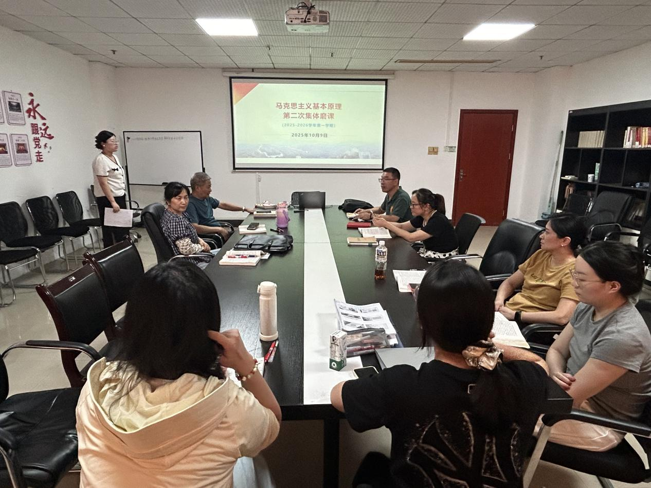 (通讯员 李梦茹)为持续精进课程教学质量,强化对马克思主义理论精髓的深度解析与教学转化,2025年10月9日,马克思主义学院“原理与概论”教研室精心组织开展了《马克思主义基本原理》课程第二次集体磨课会。此次会议聚焦“矛盾的同一性和斗争性及其在事物发展中的作用”这一核心教学板块,由潘慧苗老师进行教学展示,教研室全体教师共同参与观摩研讨,共谋教学优化路径。