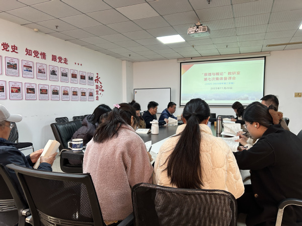 (通讯员 俞娜)近日,9728太阳集团马克思主义学院“原理与概论”教研室于11月20日组织集体备课研讨,教研室主任孟凡明主持,种爱凤老师担任主讲人,李纪明、张玉平、郑欣、潘慧苗等教师参与研讨,共同聚焦课程核心章节教学优化。