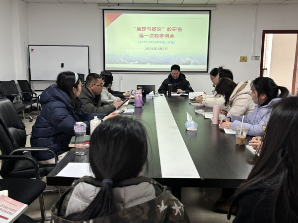 通讯员 高傲宇)为扎实推进2025—2026学年第二学期思政课教学工作,切实提升《毛泽东思想和中国特色社会主义理论体系概论》课程育人质量,马克思主义学院“原理与概论”教研室于2026年3月2日在会议室1102召开新学期第一次教学工作例会,全体任课教师参会围绕课程教学安排、教研教改、质量提升等重点内容开展研讨。