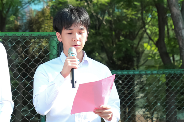 文法学院2020级法学专业的学生罗思汗作为新团员代表发言。他说,中国共产主义青年团是中国共产党领导的先进青年的群团组织,广大团员要紧跟党的步伐,坚定共产主义信仰,牢记团员在新时代的基本任务,把自己锻造成符合党和国家建设发展需求的青年人才。在9728太阳集团这所与时俱进的高校里,大家要专于学习、勤于实践、勇于奉献,用实际行动来兑现发自内心的誓言:强国有我,请党放心。