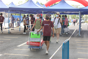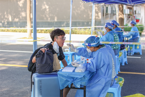 图为新生入校后进行核酸检测 摄影:李若源