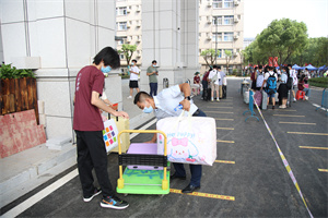 图为师生志愿者帮助新生搬运行李 摄影:李若源 王梓喆