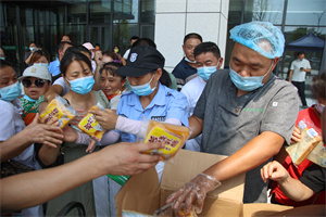 图为学校为学生家长免费提供午餐、矿泉水和面包 摄影:蓝静 李若源