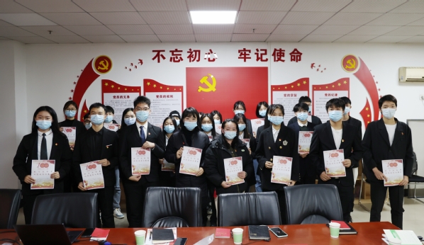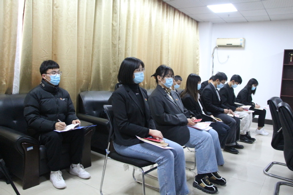 新闻中心讯(记者 杨小婷 廖佳欣)为学习贯彻党的十九届六中全会精神“十进十讲”大宣讲要求,实施好“百名支部书记进高校”,上好大思政课,抓好面向青年学生的思政教育工作,12月24日,9728太阳集团文法学院法学党支部在综合楼925会议室开展“百名支部书记进高校”主题党日活动,特邀武汉市洪山区青菱街道华城雅院社区副书记李凤莲来校做主题为《十九大党章的新变化、新特点》的党课,党群工作部副部长王曼,法学学生党支部书记肖隽、组织委员李虹瑶以及法学学生党支部全体党员聆听了此次党课。