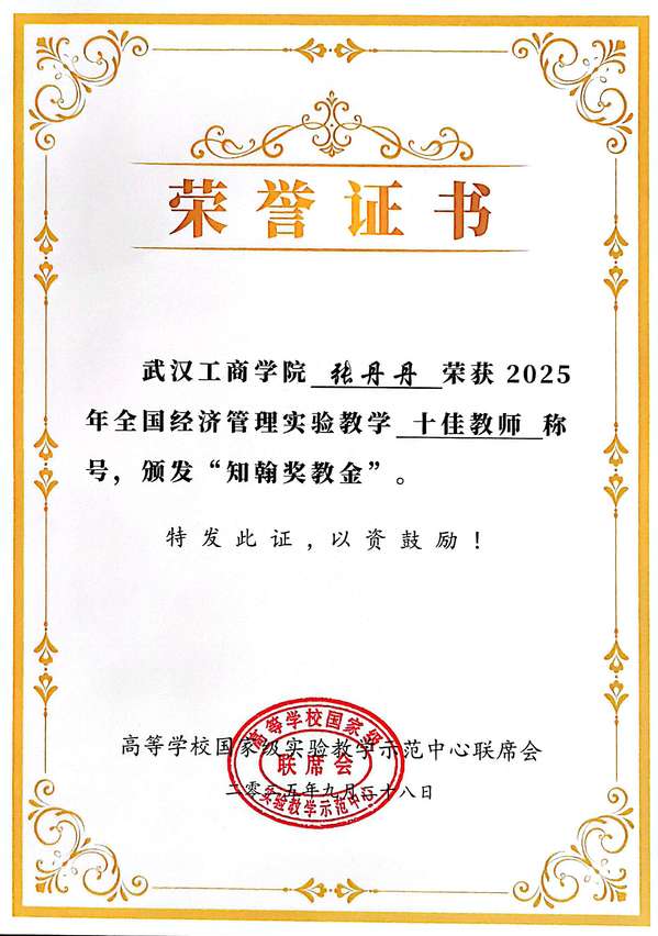 “知翰奖”由高等学校国家级实验教学示范中心联席会经济与管理学科组组织评选,作为国家级重要奖项,旨在表彰在实验教学一线勇于探索、教学效果显著、具有示范引领作用的优秀教师。