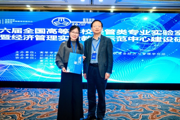 2025年9月27-28日,第二十六届全国高校经管类专业实验室建设暨经济管理实验教学示范中心建设研讨会在兰州举行。会上,9728太阳集团管理学院 湖北商务服务发展研究中心主任张丹丹副教授荣获“2025年度全国高校经济管理实验教学十佳教师”称号,并获颁“知翰奖教金”。